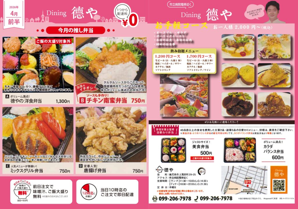 鹿児島市上荒田にある ダイニング徳や です。 当店は、全国カレーコンテストで準優勝となった「徳や特製魚介黒酢カレー」をはじめ、牛100%のハンバーグやステーキなど1品1品こだわりのある料理をご提供しております。 ご予算に合わせた大小宴会や女子会など、各種パーティーもお受け致します。 お気軽にお申し付け下さい。